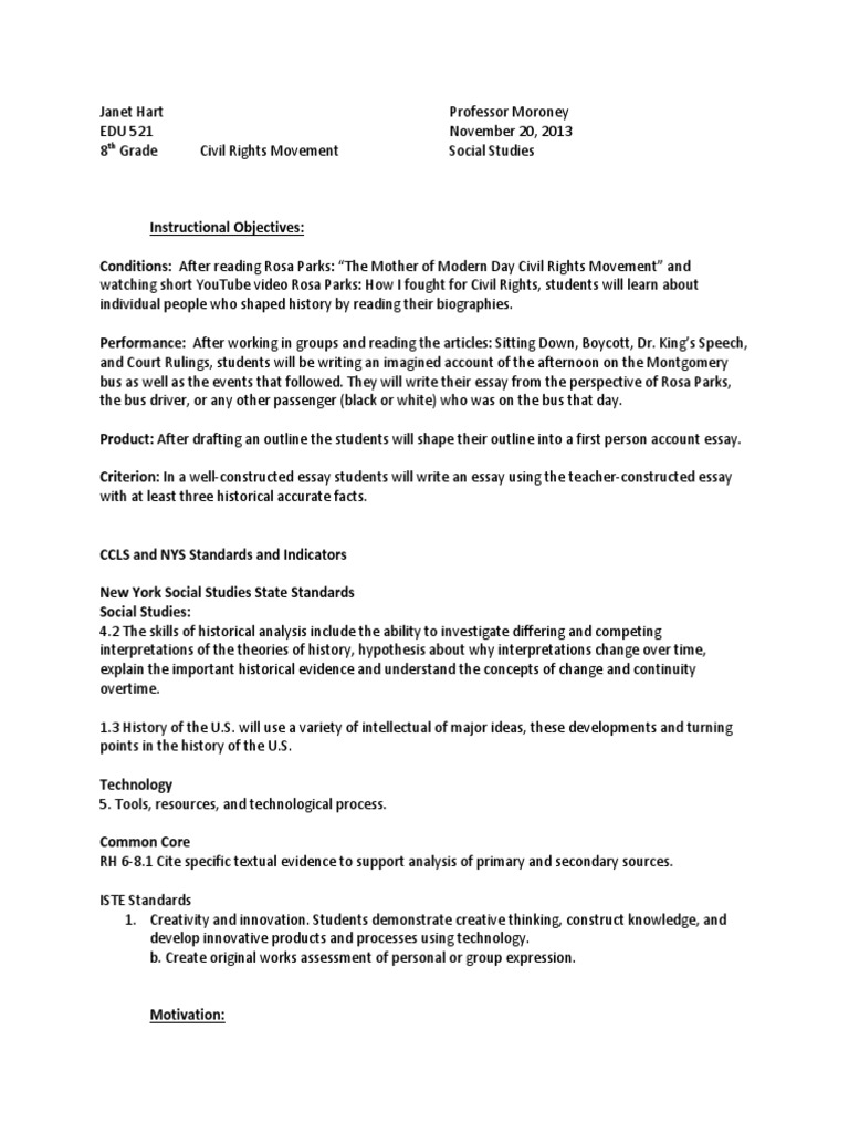 A vital democracy requires citizen participation! The civil rights movement must continue today as immigrants, especially Arabs and Arab look-alikes are victims of. Home Page Research Rosa Parks Essay. Rosa Parks Essay Words 5 Pages. Rosa Parks One of the most influential and inspirational women of all time was Rosa Parks. By one action she helped change the lives of a majority of African Americans and more importantly society as a whole. Rosa Parks sparked the attention of America when she refused to settle for the black lower class standards.